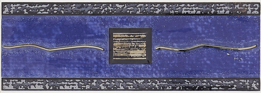 Tyylillä suunniteltu boordi, jossa tummansinisellä taustalla metallinväriä omaavia kuvioita.