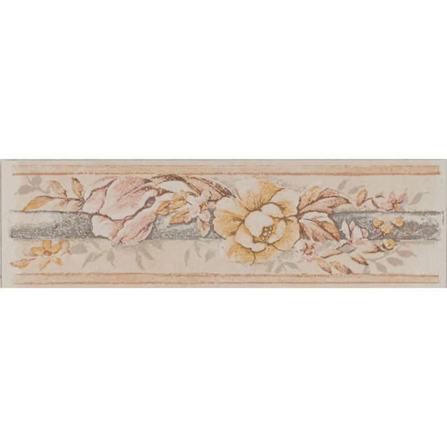 Kaunis vaaleansävyinen kukkaboordi yksityiskohtaisella kuvioinnilla.