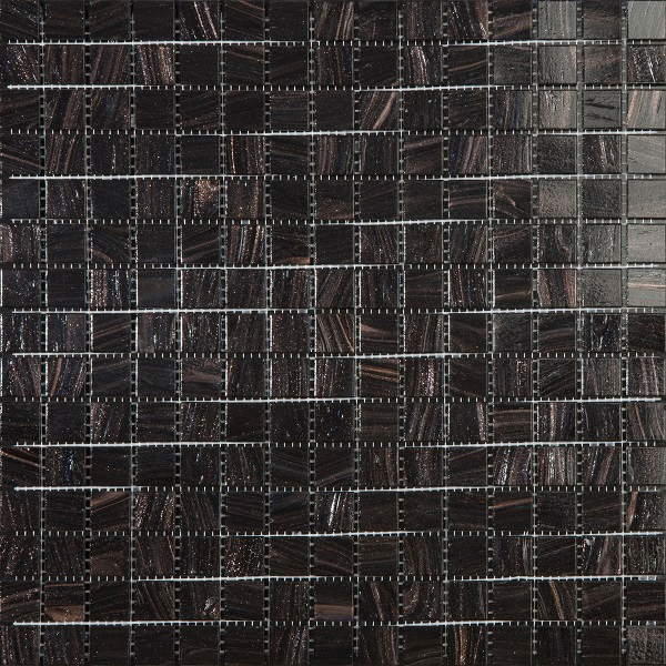 Lasista valmistettu musta mosaiikki. Mustan värin seassa kiilteleviä kuparinvärisiä sävyjä. Ruutujen koko 20mm x 20mm, myydään kappaleittain.